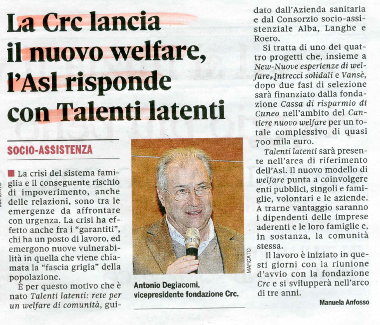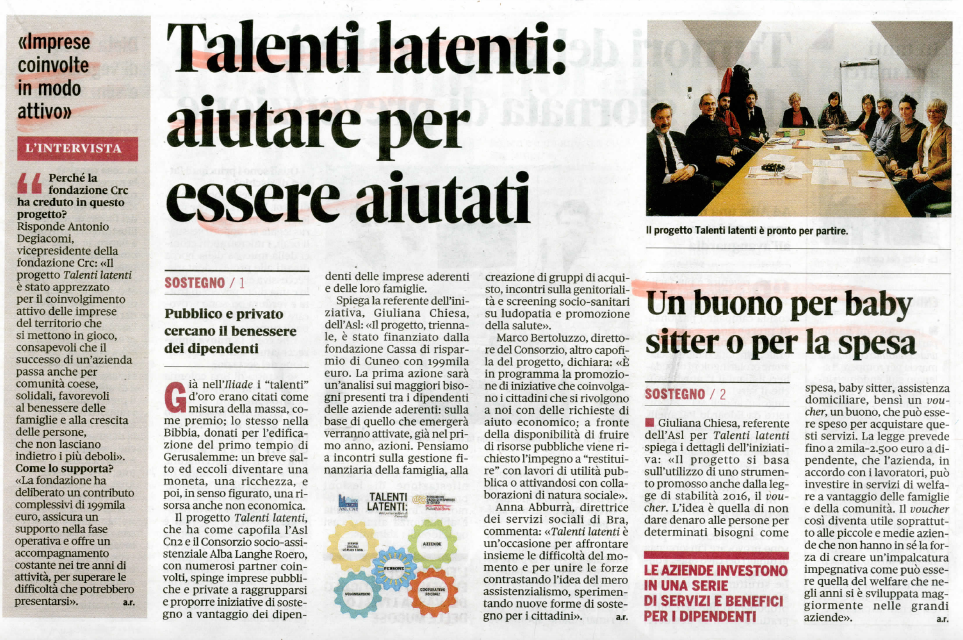 La CRC lancia il nuovo welfare, l’Asl risponde con Talenti Latenti